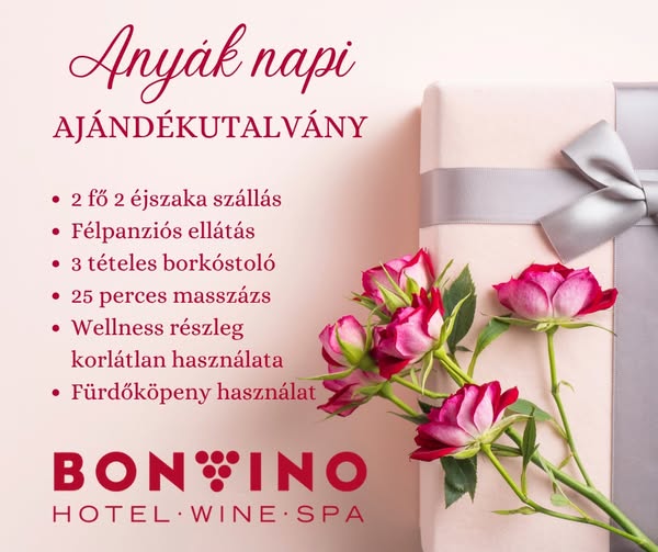 Anyák napján lepd meg Őt valami igazán különlegessel – pihenéssel, kényeztetéssel és közös élményekkel a Hotel Bonvino Wine & Spa szívében. 3 nap, 2 éjszaka, amikor csak róla szól minden.