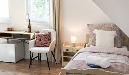 The Frizzante Guesthouse welcomes guests seeking relaxation in the heart of Badacsonytomaj, in a peaceful, green environment. The town is one of the most popular destinations in the Balaton Uplands, offering a truly rejuvenating experience with its natural surroundings, excellent wines and countless activities. Our guesthouse is located in the town center, but thanks to the building's location, it is still quiet. The beach, local restaurants, bakery, café, wine bar, and Bazalt Church are just a few minutes' walk away. The area's rich in nature trails, lookout points, and cultural programs which provide a meaningful recreation for all ages, whether families with small children or groups of young friends. Frizzante Guesthouse has three separate, comfortable and modern rooms, each comes with its own bathroom. Guests have access to a spacious and well-equipped (shared) living room-kitchen. To the delight of the little ones, a separate children's room has been set up, full of toys and storybooks. The house also has a large terrace where guests can barbecue, cook in a cauldron, or even take part in a guided wine tasting. The guest house is part of the Altinger Winery, which not only offers visitors excellent Badacsony wines, but also provides a number of activities for guests.