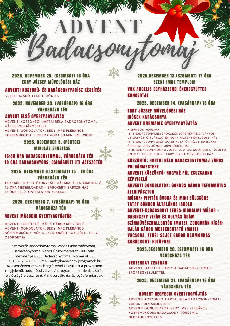 Badacsonytomaj Város Önkormányzat Kulturális Intézménye szervezésében hangolódjunk együtt a karácsonyi ünnepekre!