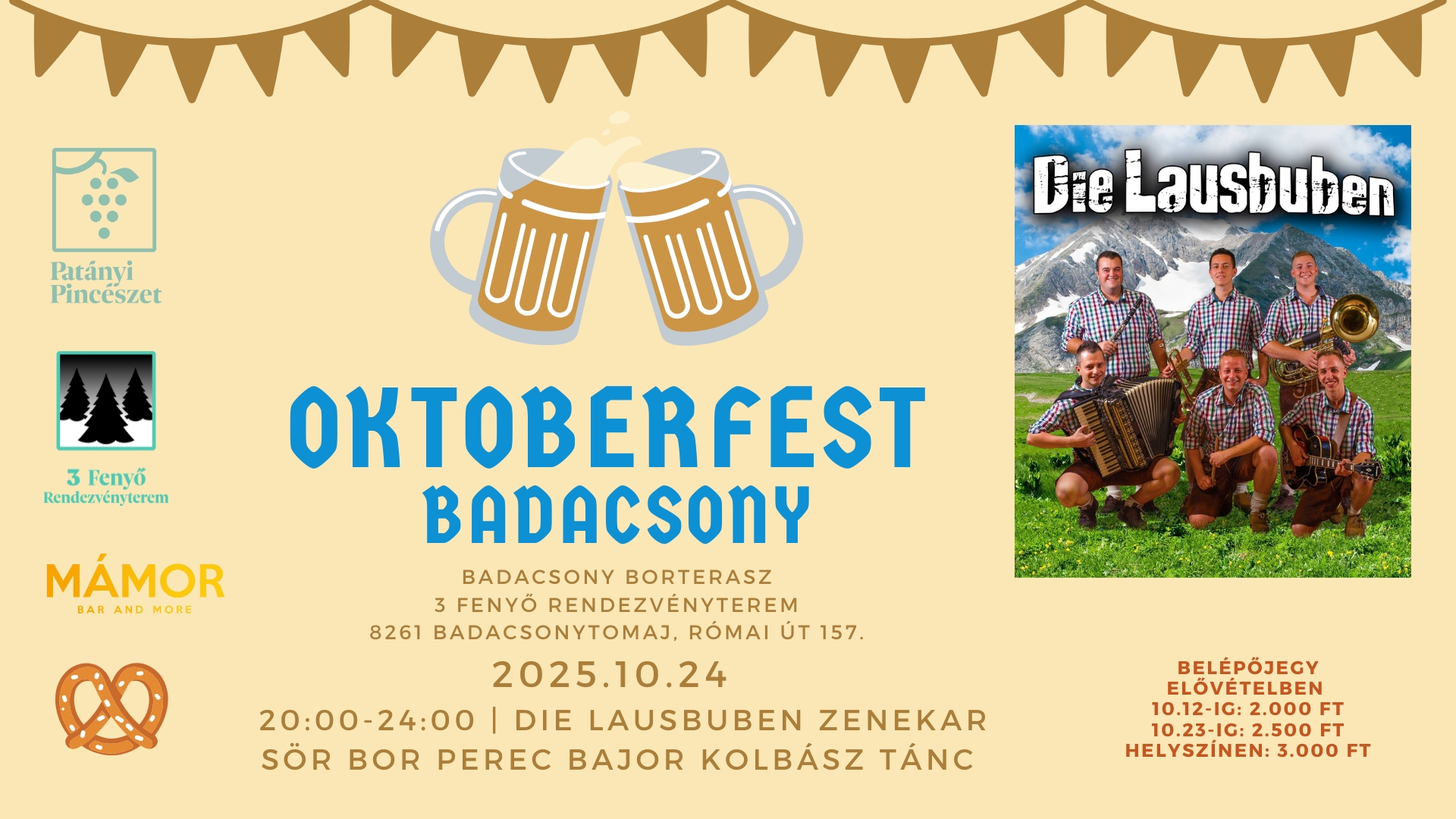 Tedd szabaddá az estét, hozd a barátokat, és bulizzunk együtt egy igazi Oktoberfest hangulatban Badacsony szívében!