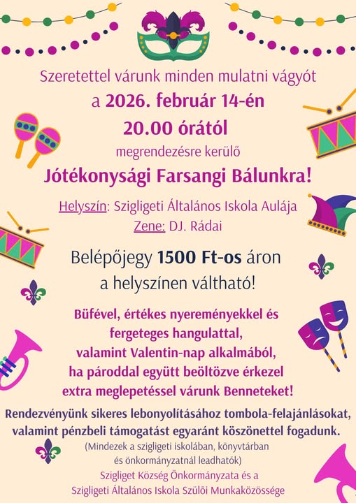 Szeretettel várnak minden mulatni vágyót a Szigligeti Általános Iskolába.