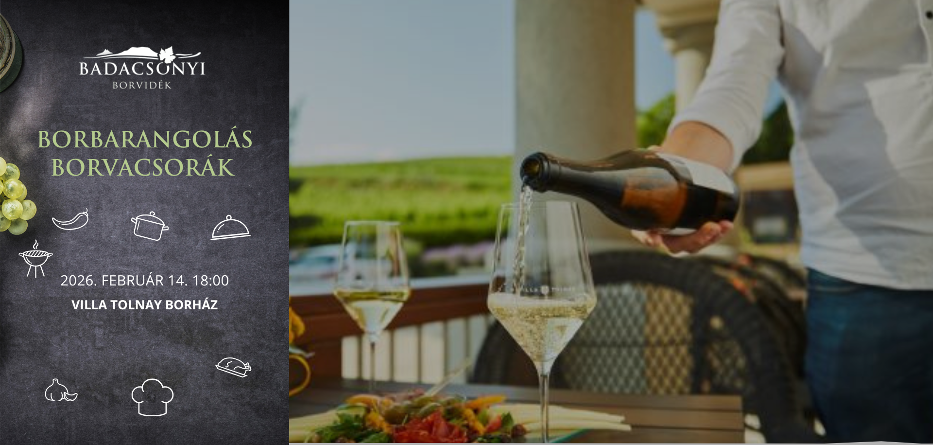 Nagy szeretettel hívunk 2026. február 14-ei borvacsoránkra, ahol a kiváló minőségű ételek mellett megkóstolhatjátok a badacsonyi borászok pincéiben őrzött legzamatosabb borokat is.